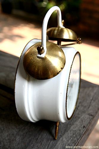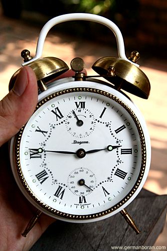รหัส: C9_89 ข้อมูล: นาฬิกาปลุกไขลานเยอรมันโบราณ ยี่ห้อ Wehrle ตีสองกระดิ่งบน ขนาด 11x11cm. หน้าปัดงามหลายๆ ตัวเรือนขาวนวลสวยๆ น่ารักๆ ค้าบ  :-*