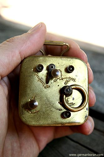 รหัส: C9_80 ข้อมูล: นาฬิกาปลุกไขลานเยอรมันโบราณ ยี่ห้อ Meister-Anker ขนาด 10x17cm. ปลุกเสียงกล่องดนตรีของ Fichter KG ณ Villingen ตัวเรือนเพ้นส์ลายดอกไม้งามๆ หน้าปัดสวยๆ น่าสะสมจ้า  ;D
