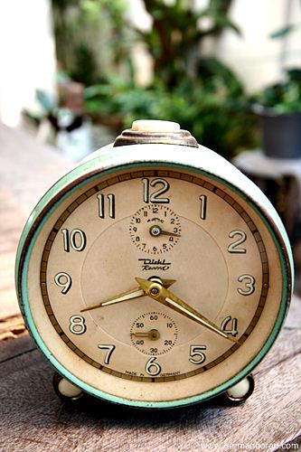 รหัส: B8_14 ข้อมูล: นาฬิกาปลุกไขลานเยอรมันโบราณ(Antique Alarm Clock) ยี่ห้อ Kaiser ขาแชมเปญ ขนาดหน้าปัด 12x12cm. สูง 20cm. ยุค 70's จ้าาา  :-*