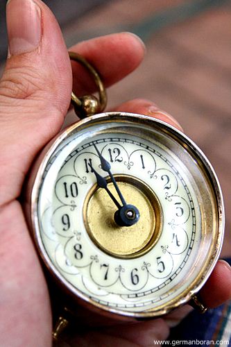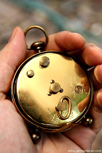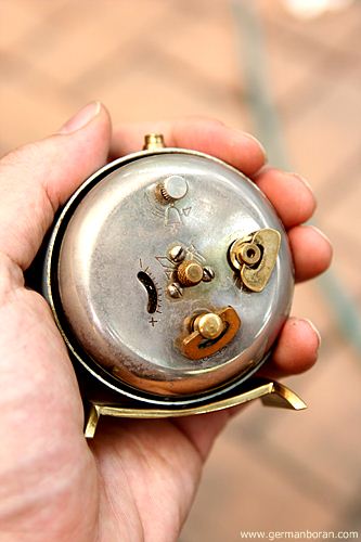 รหัส: B6_70 ข้อมูล: นาฬิกาไขลานเยอรมันโบราณ(German Alarm Clock) ลานเดียว ยุค 1900 ขนาดจิ๋ว 5.5x5.5cm. หน้ากระเบื้องม่านดำ กระจกเจียหนาๆ สุโค่ยที่สุด รูปนี้ถ่ายรูปคู่คุณพ่อที่ไม่ได้เจอกันนานครับ อิอิ  :-*