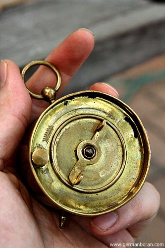 รหัส: B8_23_1 ข้อมูล: นาฬิกาปลุกไขลานเยอรมันโบราณ จิ๋วหลิว ขนาด 5.5x5.5cm. ทองเหลืองงามๆ น่ารักๆ ค้าบบบบ  ;D