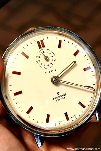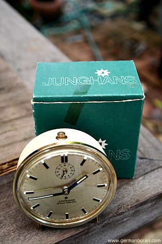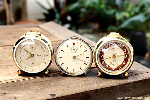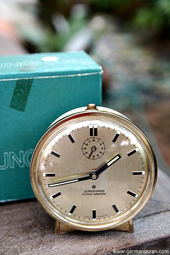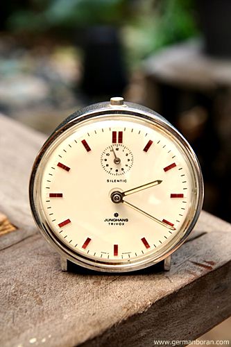 รหัส: B7_86_1 ข้อมูล: นาฬิกาปลุกไขลานเยอรมันโบราณ ยี่ห้อ Junghans รุ่น Trivox Silent-tic ขนาด 8.5x8.5cm. อัดแน่นด้วยเทคโนโลยี ปลุกเป็นเสต็ป แถมเดินเงียบเชียบ สภาพสวยๆ ผลิตช่วงปี 1956 สุดยอดนาฬิกาปลุกไขลานในยุคนั้นครับ กำลังเป็นที่นิยมในหมู่ชาวไทย มีไว้ใช้งานหรือเก็บสะสมเข้าตู้ได้เลยขอรับครับผม ซีรีย์นี้น่าเก็บมากๆ ครับ  ;D