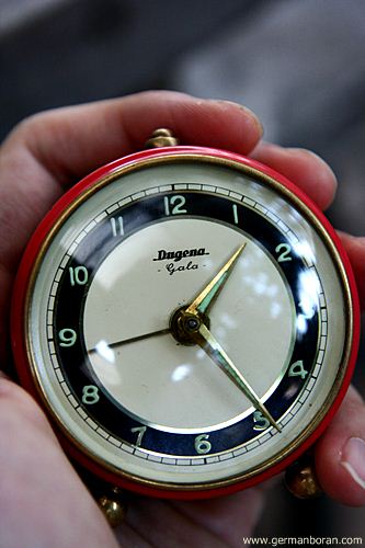 รหัส: B7_56 ข้อมูล: นาฬิกาปลุกไขลานเยอรมันโบราณ ยี่ห้อ Dugena รุ่น Gala จิ๋วหลิว ขนาด 6x6cm. น่าร้าาาาก  8)