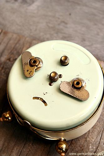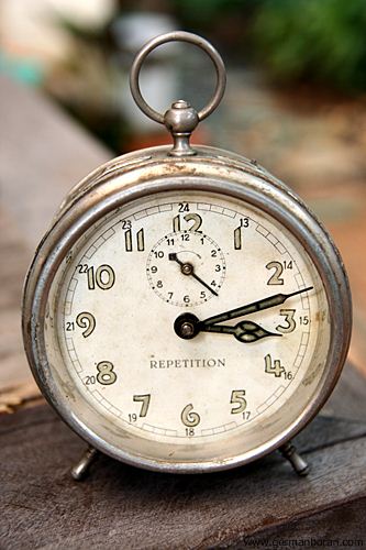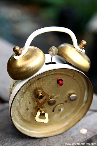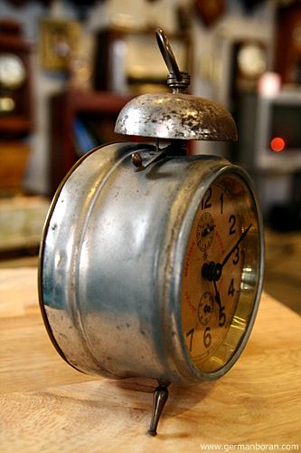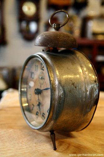 รหัส: B5_56_2 ข้อมูล: นาฬิกาปลุกไขลานเยอรมันโบราณ(Antique Alarm Clock) ขนาดหน้าปัด 10x10cm. โบร๊านโบราณ เดินยังได้ปลุกยังไหว ตรงปุ่ม เปิด-ปิดปลุกจะสั้นหน่อยนะครับพ้ม 8)