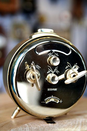 รหัส: C1_33 ข้อมูล: นาฬิกาปลุกโบราณ กระดิ่งบน ยี่ห้อ INSA ของ Yugoslavia หายาก ปัจจุบันประเทศนี้ล่มสลายแล้วนะครับ ส่วนนึงกลายเป็นประเทศ Montenegro ที่คนไทยรู้จักกันดี ขนาด 12x12cm. หน้าปัดสวยๆ สีสันสดใส คลาสสสสสิคจ้าาาาา  ;D