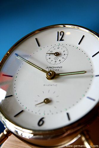 รหัส: A8_42 ข้อมูล: นาฬิกาปลุกไขลานเยอรมันโบราณ ยี่ห้อ Junghans รุ่น Trivox Silent-tic ขนาด 9x9cm. อัดแน่นด้วยเทคโนโลยี ปลุกเป็นเสต็ป(Trivox) แถมเดินเงียบเชียบ(Silent-tic) เรือนอวบอ้วน หน้าปัดเรียบหรู เลขนูนสีดำขลับ ตัวเรือนไร้ริ้วรอย สภาพกริ๊บๆ แบ่งมาจากกรุครับ ผลิตช่วงปี 1956 สุดยอดนาฬิกาปลุกไขลานในยุคนั้นครับ กำลังเป็นที่นิยมในหมู่ชาวไทย มีไว้ใช้งานหรือเก็บสะสมเข้าตู้ได้เลยขอรับครับผม ซีรีย์นี้น่าเก็บมากๆ ครับ  ;D