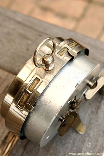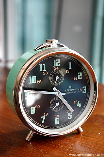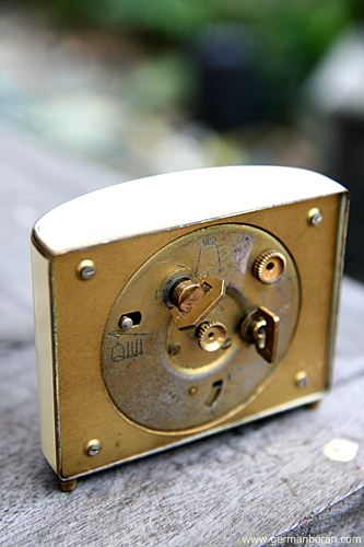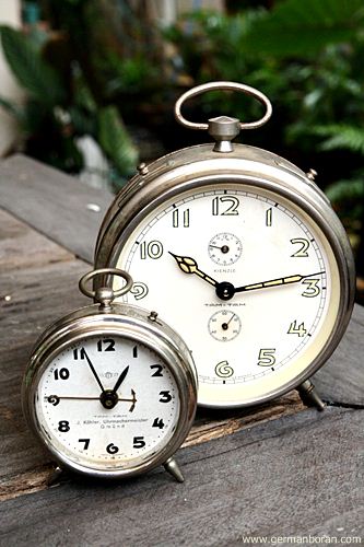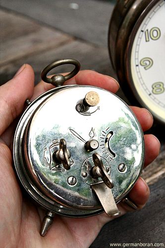 รหัส: B9_0_27 ข้อมูล: นาฬิกาปลุกไขลานเยอรมันโบราณ(German Alarm Clock) ยี่ห้อ Junghans ยุค 1900 หน้าปัดขนาด 10x10cm. ใช้งานได้ครบทุกฟังก์ชัน หน้าปั๊มลายจ๋วยๆ ด้านหลังปั๊มวิธีใช้งานเป็นภาษาเยอรมัน สวยๆ สภาพกรุ๊บกริ๊บน่าสะสมจ้ะ  ;D
