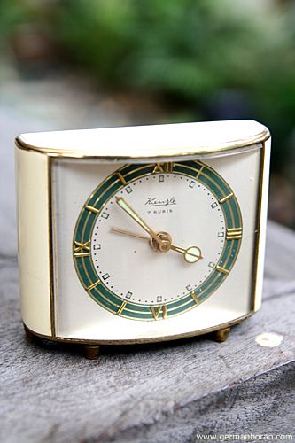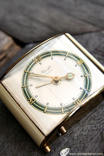 รหัส: B9_33 ข้อมูล: นาฬิกาปลุกเยอรมันโบราณ ยี่ห้อ Kienzle 7 Jewels ขนาด 6.5x5.5cm. จ๋วยๆ  :-*