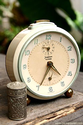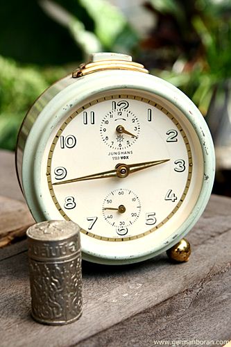 รหัส: C1_0_7 ข้อมูล: นาฬิกาปลุกไขลานเยอรมันโบราณ ยี่ห้อ Junghans รุ่น Trivox ขนาด 9x9cm. อัดแน่นด้วยเทคโนโลยี ปลุกเป็นเสต็ป(Trivox) เรือนอวบอ้วน แบ่งมาจากกรุครับ ผลิตช่วงปี 1956 สุดยอดนาฬิกาปลุกไขลานในยุคนั้นครับ กำลังเป็นที่นิยมในหมู่ชาวไทย มีไว้ใช้งานหรือเก็บสะสมเข้าตู้ได้เลยขอรับครับผม ซีรีย์นี้น่าเก็บมากๆ ครับ  ;D