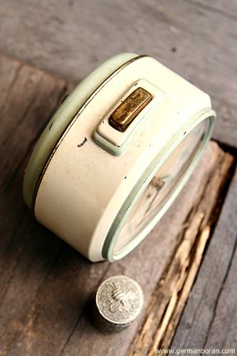 รหัส: C1_0_8 ข้อมูล: นาฬิกาปลุกไขลานเยอรมันโบราณ ยี่ห้อ Junghans รุ่น Trivox ขนาด 9x9cm. อัดแน่นด้วยเทคโนโลยี ปลุกเป็นเสต็ป(Trivox) เรือนอวบอ้วน แบ่งมาจากกรุครับ ผลิตช่วงปี 1956 สุดยอดนาฬิกาปลุกไขลานในยุคนั้นครับ กำลังเป็นที่นิยมในหมู่ชาวไทย มีไว้ใช้งานหรือเก็บสะสมเข้าตู้ได้เลยขอรับครับผม ซีรีย์นี้น่าเก็บมากๆ ครับ  ;D