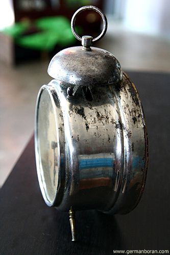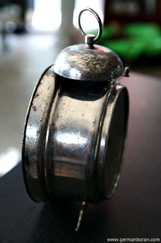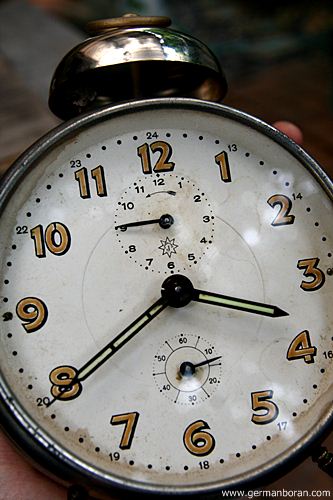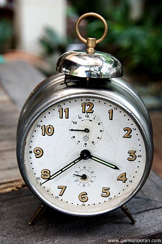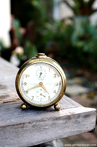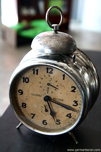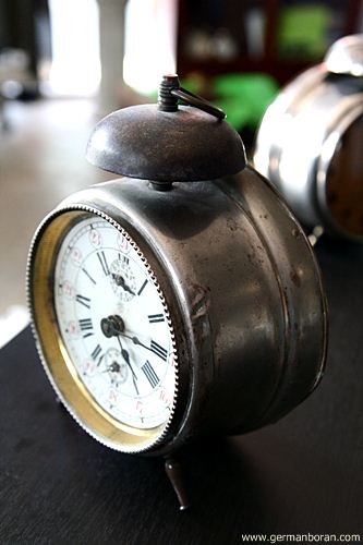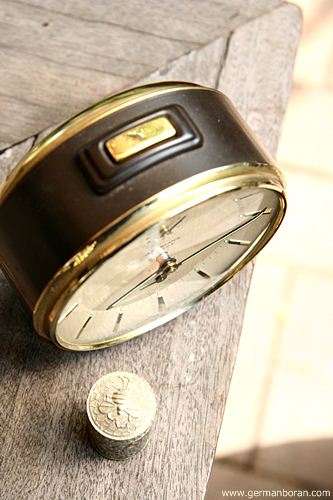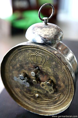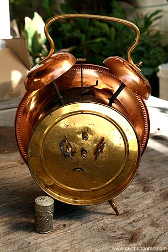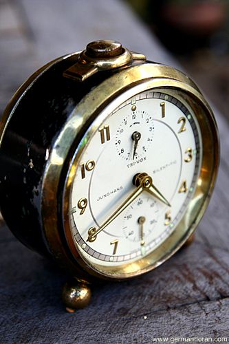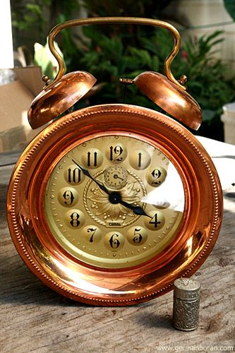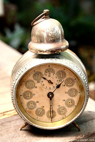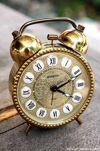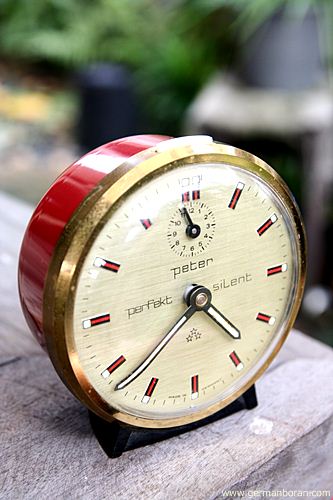 รหัส: C1_5_1 ข้อมูล: นาฬิกาปลุกไขลานเยอรมันโบราณ(German Alarm Clock) ยี่ห้อ Peter สามดาว ปลุกเสต็ป-เดินเงียบ ขนาด 9x9cm. หน้าทองสวยๆ จ้าาาาาา  :-*