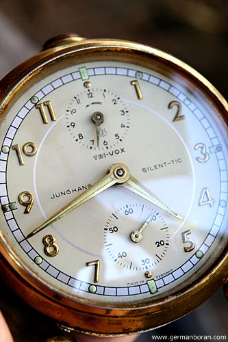 รหัส: B7_93 ข้อมูล: นาฬิกาปลุกไขลานเยอรมันโบราณ ยี่ห้อ Junghans รุ่น Trivox Silent-tic ขนาด 9x9cm. อัดแน่นด้วยเทคโนโลยี ปลุกเป็นเสต็ป แถมเดินเงียบเชียบ เรือนอวบอ้วน ขาตั้งแหนมตุ้มจิ๋ว หน้าปัดสวยเก๋หายาก เลขนูนๆ ตัวเรือนมีร่องรอยผ่านการใช้งานดิบๆ คลาสสิคๆ ผลิตช่วงปี 1956 สุดยอดนาฬิกาปลุกไขลานในยุคนั้นครับ กำลังเป็นที่นิยมในหมู่ชาวไทย มีไว้ใช้งานหรือเก็บสะสมเข้าตู้ได้เลยขอรับครับผม ซีรีย์นี้น่าเก็บมากๆ ครับ  ;D