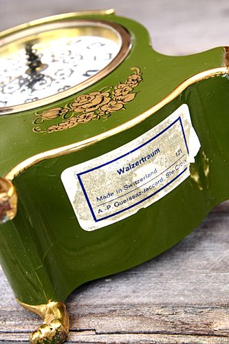 รหัส: B8_84 ข้อมูล: นาฬิกาปลุกไขลานเยอรมันโบราณ ยี่ห้อ Schmid ขนาด 10x18cm. ปลุกเสียงกล่องดนตรีสวิสเพลง "Walzertraum"(http://en.wikipedia.org/wiki/Ein_Walzertraum) ตัวเรือนไม้เพ้นส์ลายสวยงาม ขาสิงห์ น่าสะสมค้าบบบ  ;D