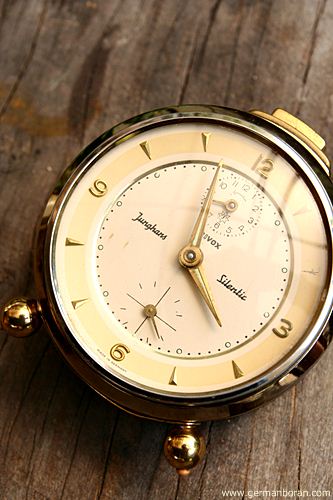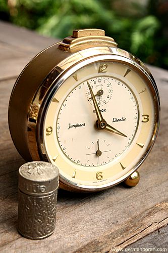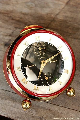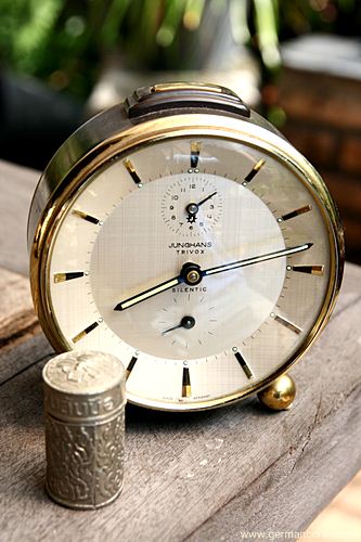 รหัส: C1_0_1 ข้อมูล: นาฬิกาปลุกไขลานเยอรมันโบราณ ยี่ห้อ Junghans รุ่น Trivox Silent-tic ขนาด 9x9cm. อัดแน่นด้วยเทคโนโลยี ปลุกเป็นเสต็ป(Trivox) แถมเดินเงียบเชียบ(Silent-tic) เรือนอวบอ้วน แบ่งมาจากกรุครับ ผลิตช่วงปี 1956 สุดยอดนาฬิกาปลุกไขลานในยุคนั้นครับ กำลังเป็นที่นิยมในหมู่ชาวไทย มีไว้ใช้งานหรือเก็บสะสมเข้าตู้ได้เลยขอรับครับผม ซีรีย์นี้น่าเก็บมากๆ ครับ  ;D
