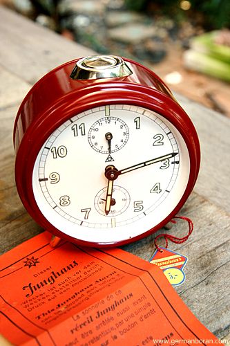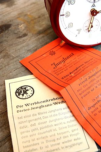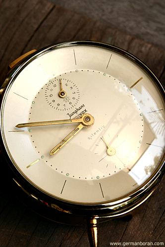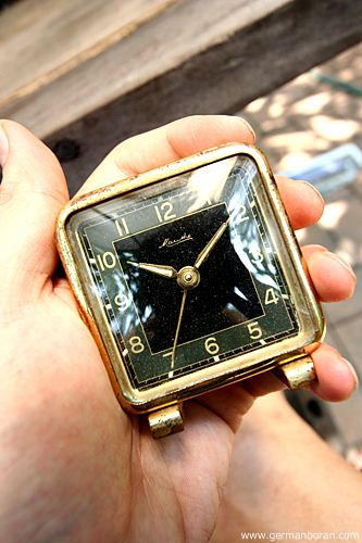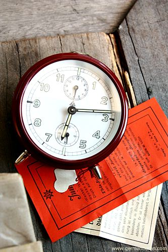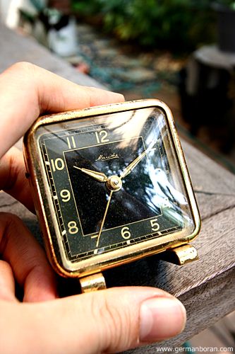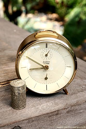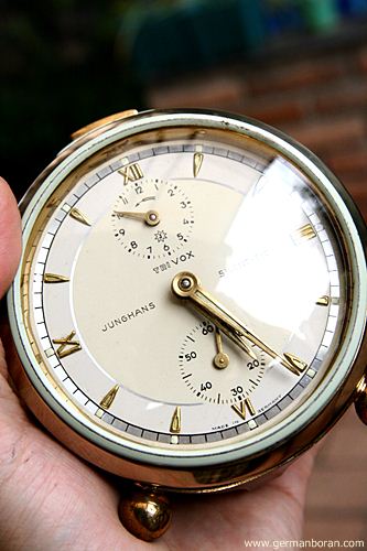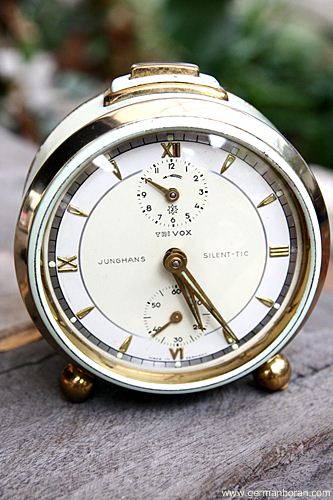รหัส: C2_0_8 ข้อมูล: นาฬิกาปลุกไขลานเยอรมันโบราณ ยี่ห้อ Junghans รุ่น Trivox Silent-tic ขนาด 9x9cm. ปลุกเป็นเสต็ป(Trivox) เดินเงียบๆ(Silent-tic) เลขทองเหลืองนูน เรือนอวบอ้วน ผลิตช่วงปี 1956 ครับ ;D