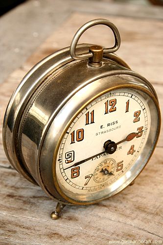 รหัส: C2_35 ข้อมูล: นาฬิกาปลุกไขลานโบราณ Made in France หน้าปัดขนาด 9x9cm. หน้าพิมพ์ชื่อห้างร้านในเมือง Strasbourg รุ่นช่วงต้นศตวรรษ 1900 งามหลายๆ จ้ะ  ;D