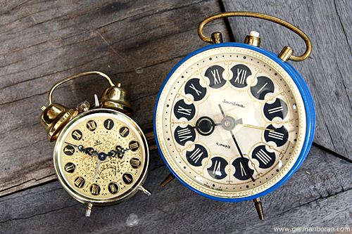 รหัส: C2_3 ข้อมูล: นาฬิกาปลุกโบราณ จาก USSR(สหภาพโซเวียตเดิม) แบบไขลาน ยี่ห้อ Jantaz มีหูหิ้ว 4 Jewels หน้าปัดเล่นลายดิ้นทอง สวยๆ ไซส์ใหญ่ 11x11 cm. ครับ  :-*