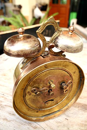 รหัส: B8_23_3 ข้อมูล: นาฬิกาปลุกไขลานเยอรมันโบราณ(German Antique Alarm Clock) ยี่ห้อ Mauthe ยุค 1900 หน้าปัดขนาด 10x10cm. ใช้งานได้ครบทุกฟังก์ชัน ตัวเรือนสีทองแดง กระดิ่งคว่ำทรงหยดน้ำหายาก น่าสะสมครับพ้ม  ;D