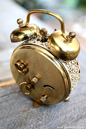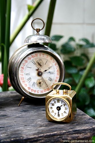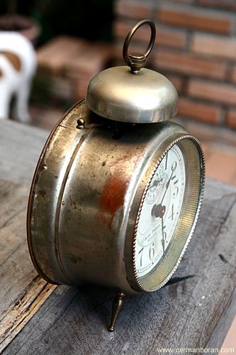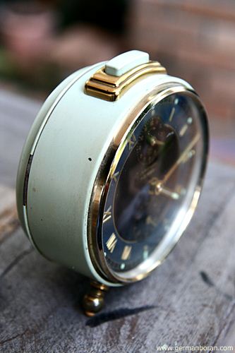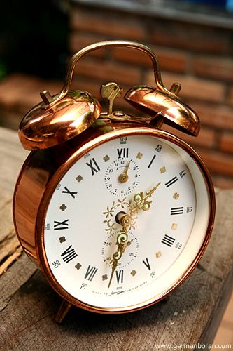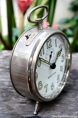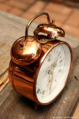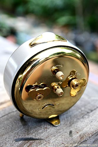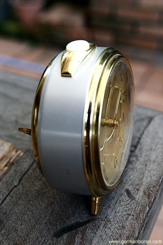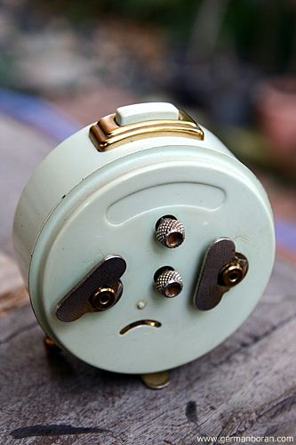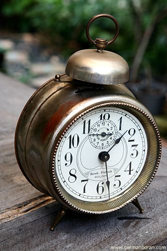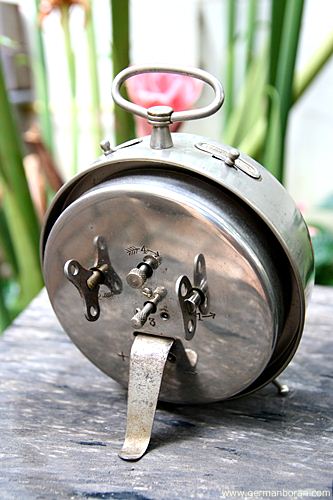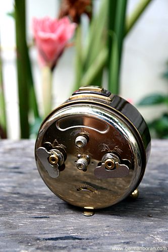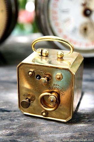 รหัส: C2_82 ข้อมูล: นาฬิกาปลุกไขลานเยอรมันโบราณ(German Alarm Clock) ยี่ห้อ Meister-Anker สองกระดิ่ง ไซส์เล็ก ขนาด 6x6cm. สภาพจ๋วยๆ  :-*