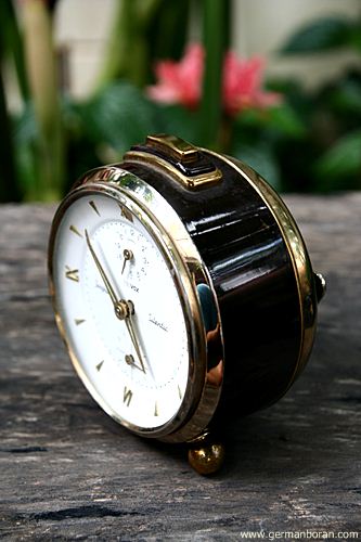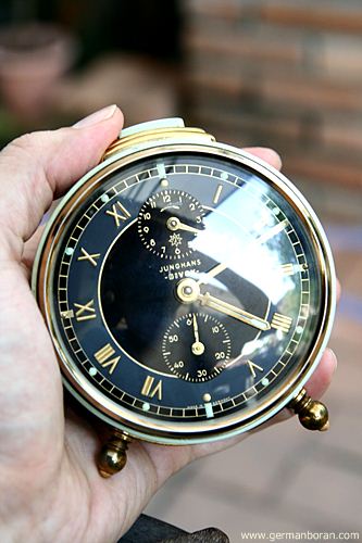 รหัส: C5_25 ข้อมูล: นาฬิกาปลุกไขลานเยอรมันโบราณ ยี่ห้อ Junghans รุ่น Trivox Silent-tic ขนาด 9x9cm. อัดแน่นด้วยเทคโนโลยี ปลุกเป็นเสต็ป(Trivox) แถมเดินเงียบเชียบ(Silent-tic) หน้าปัดสวยล้ำทองเหลืองนูนๆ เรือนอวบอ้วนขาแหนมตุ้มจิ๋ว ผลิตช่วงปี 1956 สุดยอดนาฬิกาปลุกไขลานในยุคนั้นครับ กำลังเป็นที่นิยมในหมู่ชาวไทย มีไว้ใช้งานหรือเก็บสะสมเข้าตู้ได้เลยขอรับครับผม ซีรีย์นี้น่าเก็บมากๆ ครับเพราะมีหลายแบบมากๆ  ;D