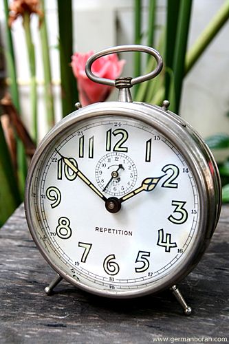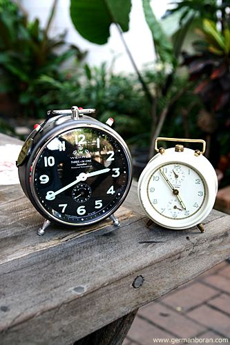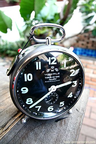 รหัส: C4_45 ข้อมูล: นาฬิกาปลุกไขลานเยอรมันโบราณ แบบสามลาน WEHRLE ขนาดยักษ์ 13x13cm. รุ่นพิเศษสุดๆๆๆ THREE-IN-ONE มียี่ห้อเดียว รุ่นเดียวเท่านั้นครับระบบนี้ ที่ทั้งปลุกและทั้งตีได้เหมือนนาฬิกาสองลาน(ตีหนึ่งครั้งที่เลข 6 ตีตามจำนวนชม. ที่เลข 12) มาพร้อมกล่องแต๊ๆ หายากส์คร้าบบบบบ  8)