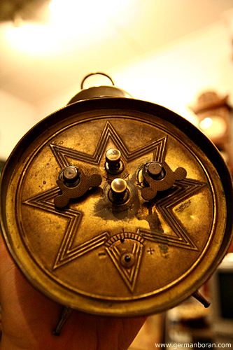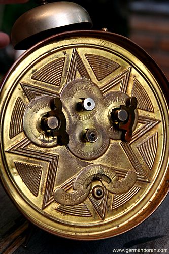 รหัส: C4_47 ข้อมูล: นาฬิกาปลุกไขลานเยอรมันโบราณ(German Antique Alarm Clock) ยุค 1900 ยี่ห้อ Junghans หน้าปัดขนาด 10x10cm. หน้าปัดลายสวยๆ พิมพ์ชื่อห้างจัดจำหน่ายในเยอรมนีสมัยก่อน(เมือง Soldin ปัจจุบัน Mysliborz ประเทศ Poland ครับ: http://polandpoland.com/soldin.html) ฝาหลังลายดาวสวยจัด น่าเก็บมากๆ คร้าบบบบ  ;D