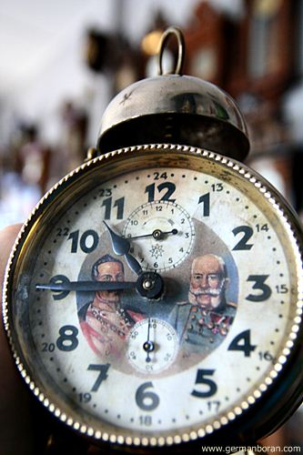 รหัส: C4_51 ข้อมูล: นาฬิกาปลุกไขลานเยอรมันโบราณ Junghans ยุคต้นศตวรรษ 1900 ขนาดหน้าปัด 10x10cm. หน้าปัดพิมพ์ลายสองกษัตริย์ผู้ยิ่งใหญ่ Wilhelm II & Franz Joseph I ตีกระดิ่งบนสวยๆ ฝาหลังรูปดาว เรือนนี้น่าสะสมนะคร้าบบบบบบ  ;D