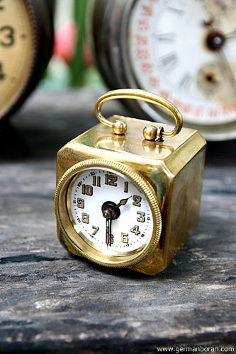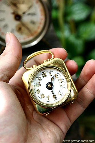 รหัส: C5_15 ข้อมูล: นาฬิกาปลุกเยอรมันโบราณ ยุคต้นศตวรรษ 1900 แบบไขลานลานเดียวเปรี้ยวสองฟังก์ชั่น(ตามเข็มลานตี ทวนเข็มลานเดิน) ซุปเปอร์จิ๋ว 4x4cm. หน้ากระเบื้อง สภาพกริ๊บๆ น่ารักๆ หายากกกส์คร้าบบบ ;D