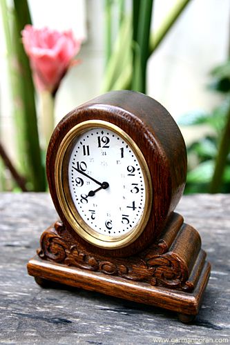 รหัส: C5_16 ข้อมูล: นาฬิกาปลุกไขลานเยอรมันโบราณ(German Antique Alarm Clock) ยุคช่วง 1900 Junghans ไซส์เล็กกำลังน่ารัก ขนาด(กว้างxสูง) 13x11cm. หน้าปัดกระเบื้องทรงวงรี ตัวเรือนไม้แกะสลักสวยๆ น่าชังยิ่งนักคร้าบบบบบ ;D