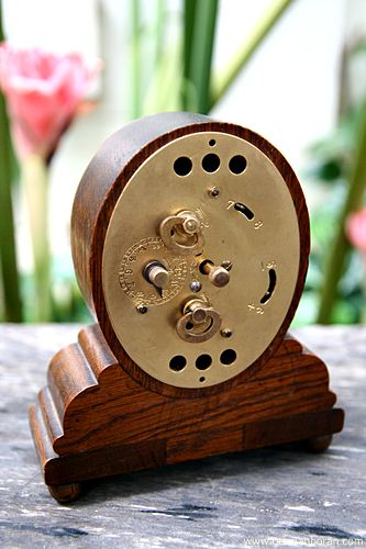 รหัส: C3_99 ข้อมูล: นาฬิกาปลุกไขลานเยอรมันโบราณ(German Alarm Clock) ยี่ห้อ Kienzle ตัวเรือนไม้ประดับทองเหลืองลวดลายสวยๆ ขนาด 10x12cm. หน้าปัดวงรีแบบหลุยส์ๆ สวยมาาาาาาาาาาาาาาาาาาากส์ อายุประมาณ 80 ปี หายากคร้าบบบบ ;D